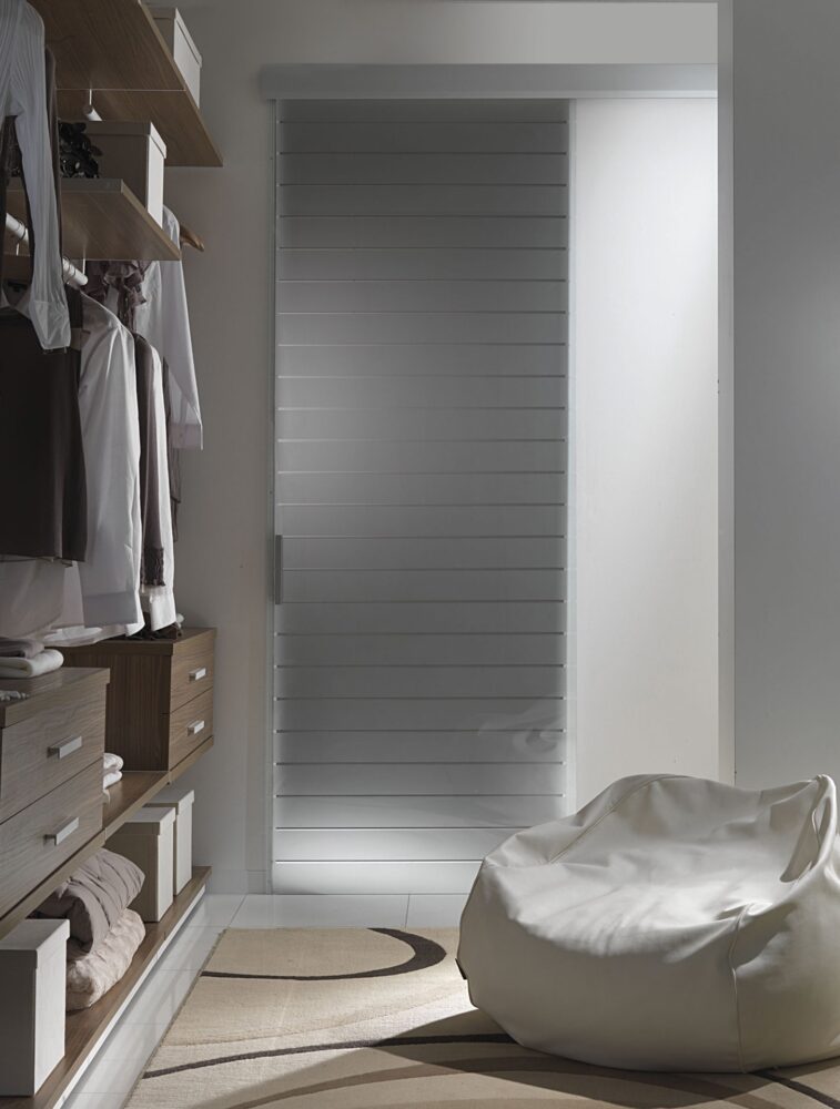 Le porte scorrevoli rappresentano la soluzione ideale per chiudere una cabina armadio. Rispetto alle porte battenti canoniche, hanno il vantaggio di non occupare spazio vitale all’interno della cabina, sia per quanto riguarda l’accesso ai capi, sia per il contenimento degli stessi.