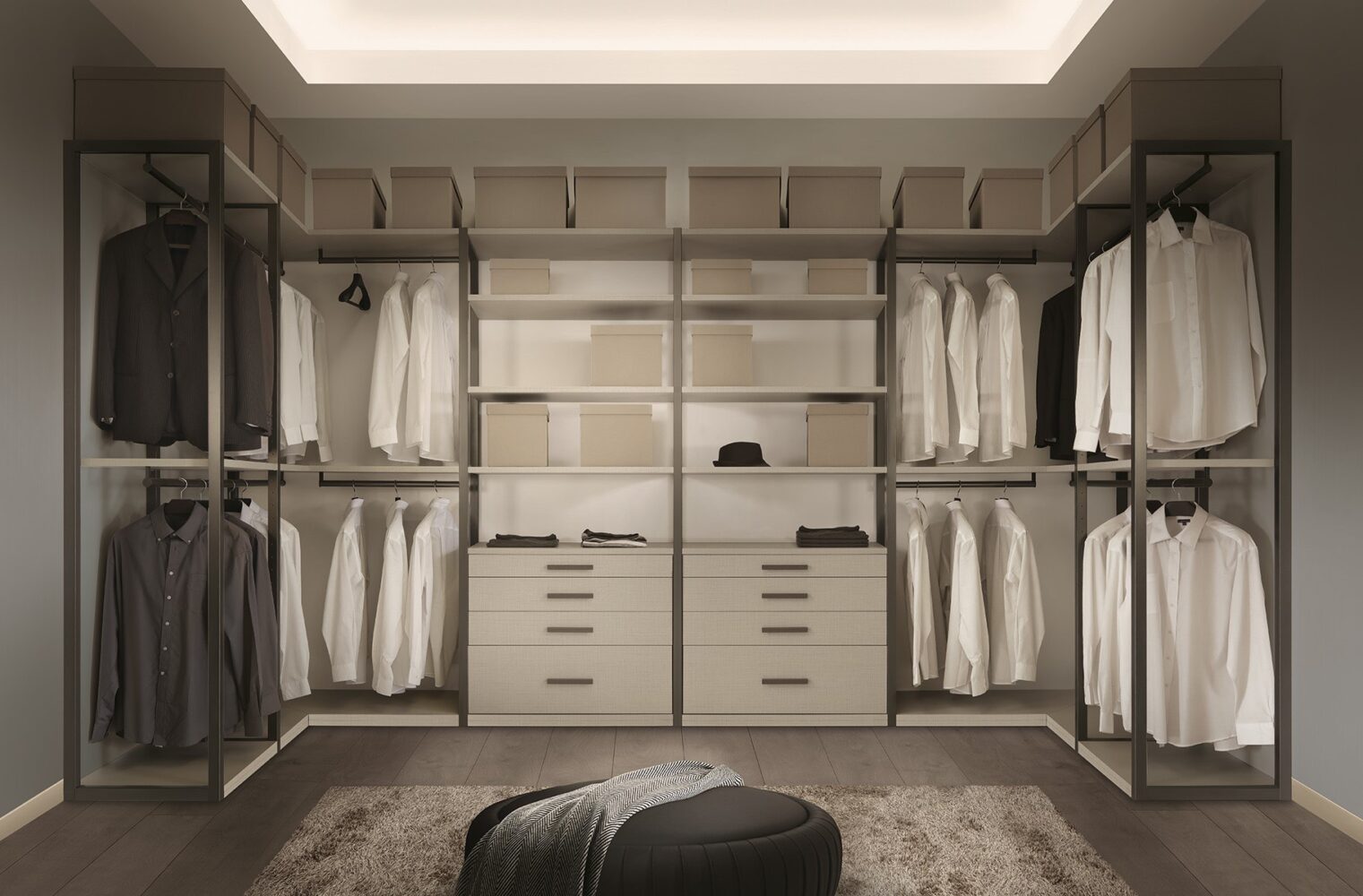 Vivi l’esperienza di un’organizzazione impeccabile con questa cabina armadio angolare, un esempio perfetto di funzionalità senza rinunce